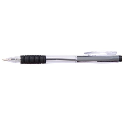 długopis automatyczny z wymiennym olejowym wkładem ? obudowa zaprojektowana specjalnie pod kątem ergonomii ? gumowy uchwyt gwarantujący komfort pisania ? transparentna obudowa pozwalająca kontrolować stopień zużycia tuszu ? klips w kolorze tuszu ? tusz wodoodporny ? średnica kulki: 0,7mm ? grubość linii pisania: 0,5mm ? kolor: czarnySpecyfikacja techniczna