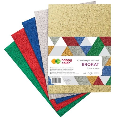 HA 7132 203 Arkusze piankowe MIX Brokat, A4, 5 ark., 5 kolorów, Happy Color