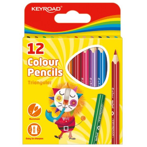 Kredki ołówkowe KEYROAD Mini, trójkątne, 12szt., mix kolorów