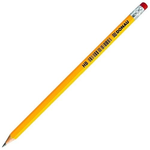 Ołówek drewniany z gumką DONAU, HB, lakierowany, żółty