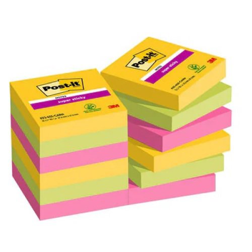 Karteczki samoprzylepne Post-it® Super Sticky, kolekcja CARNIVAL 47,6 x 47,6 mm, 12 x 90 karteczek #