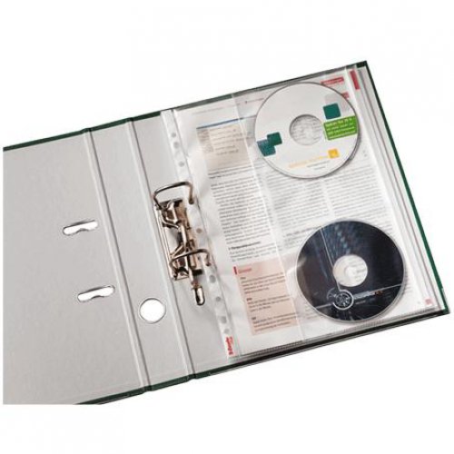 Koszulka wykonana z folii polipropylenowej. Posiada kieszeń na dokumenty A4 oraz dodatkowo boczną kieszeń zakończoną klapką na 2 CD.Kieszeń na CD składana do środka.