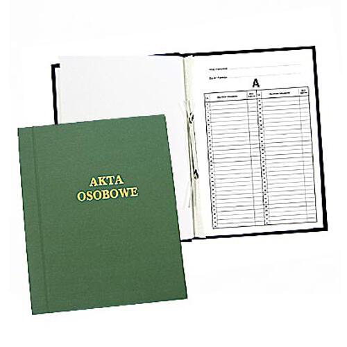 Teczka na akta osobowe w formacie A4, wykonana z tektury - oprawa introligatorska. Kolory: niebieski, czarny, bordowy, zielony.Specyfikacja techniczna